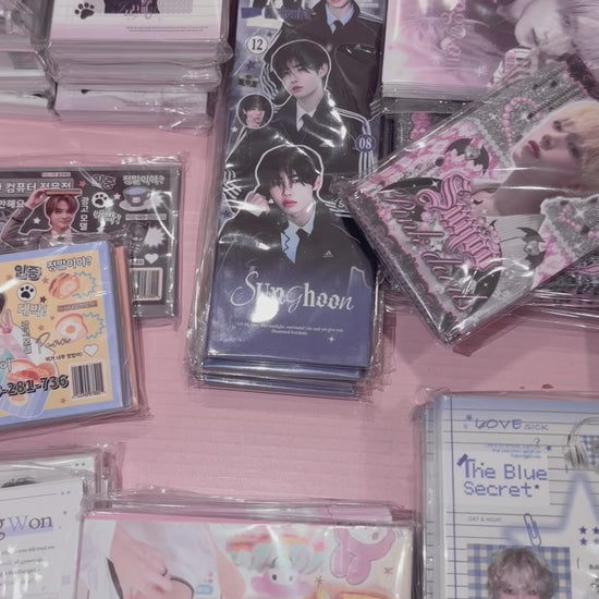 includes 1x “enhypen” acrylic keychain (sold out) and 35 fan made deco cards of all 7 members of enhypen